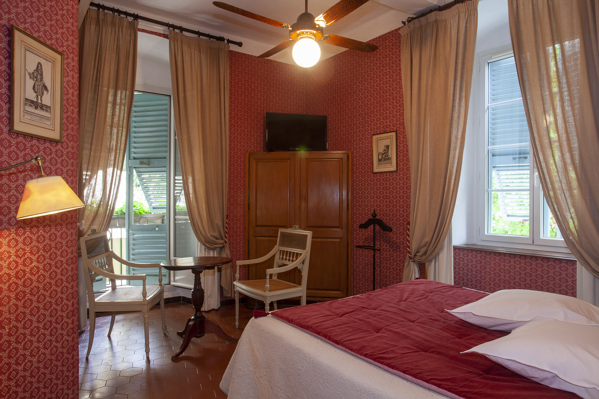 They are more spacious and all open onto the street. The balconies are decorated with red and pink geraniums and have a small table and chairs, ideal for a breakfast or an aperitif.